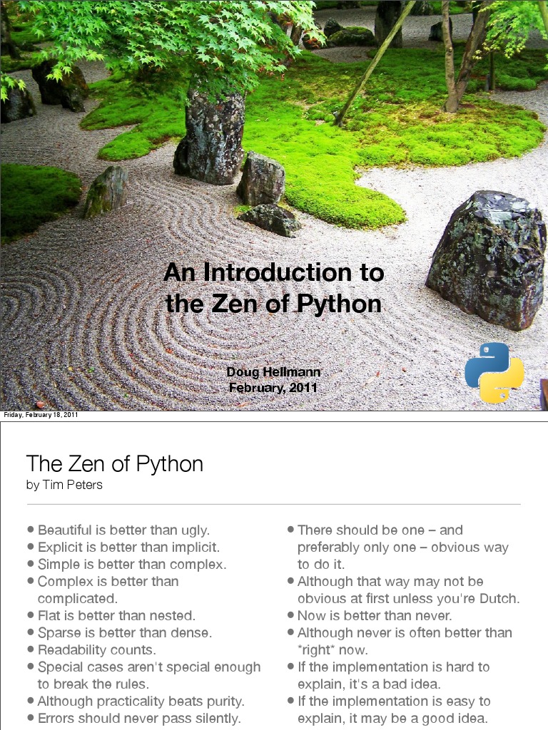 Zen of Python: Python has a set of guiding principles called the Zen of ...
