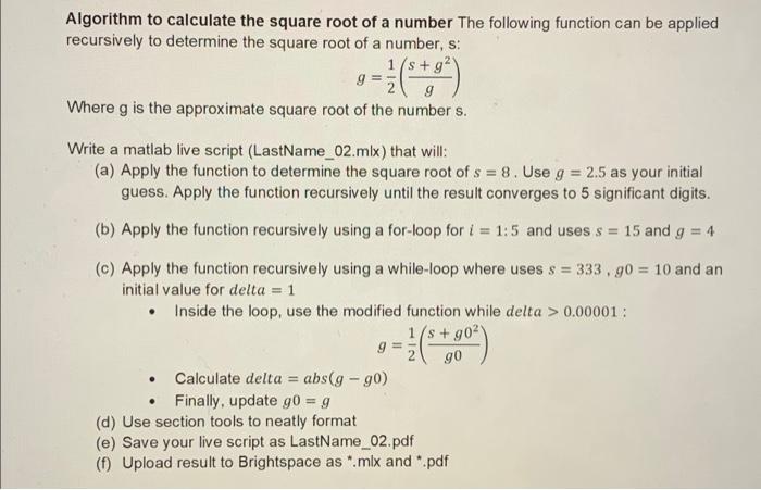Solved For the algorithm to compute the square root of a | Chegg.com