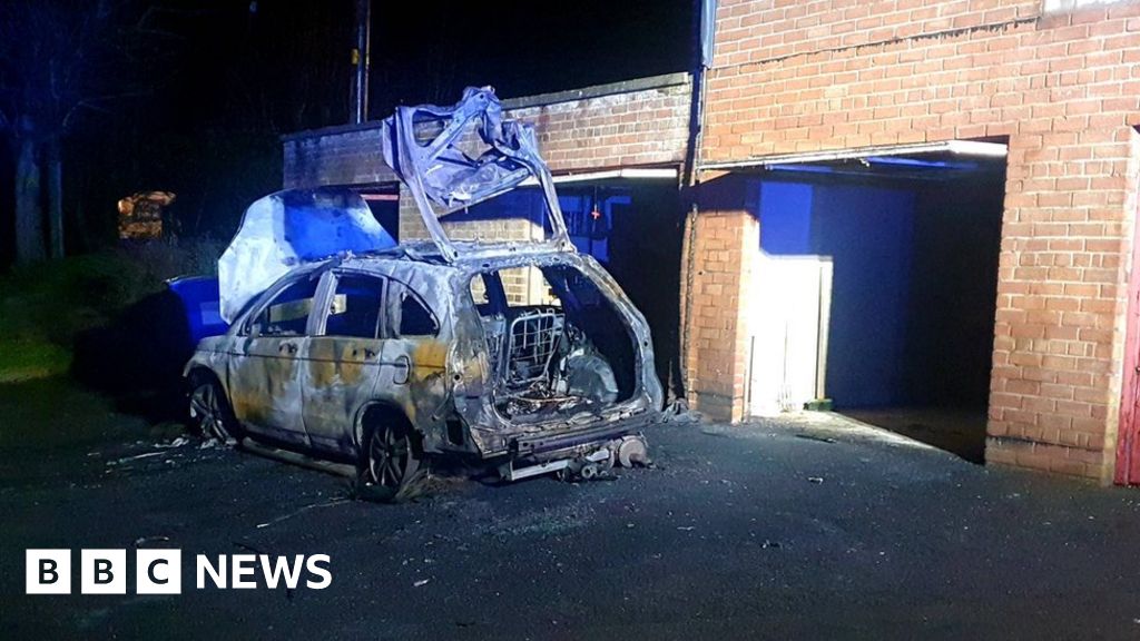 Donaghmore: Car destroyed in petrol bomb attack - BBC News