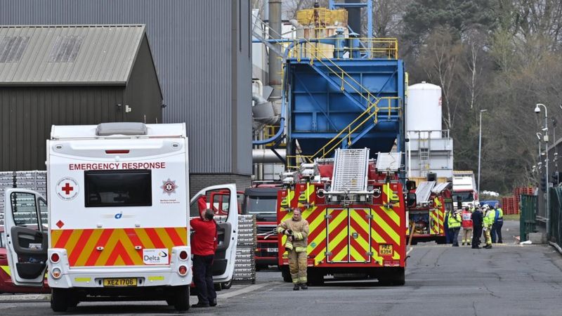 Dunmurry: Firefighters tackling silo fire in industrial estate - BBC News