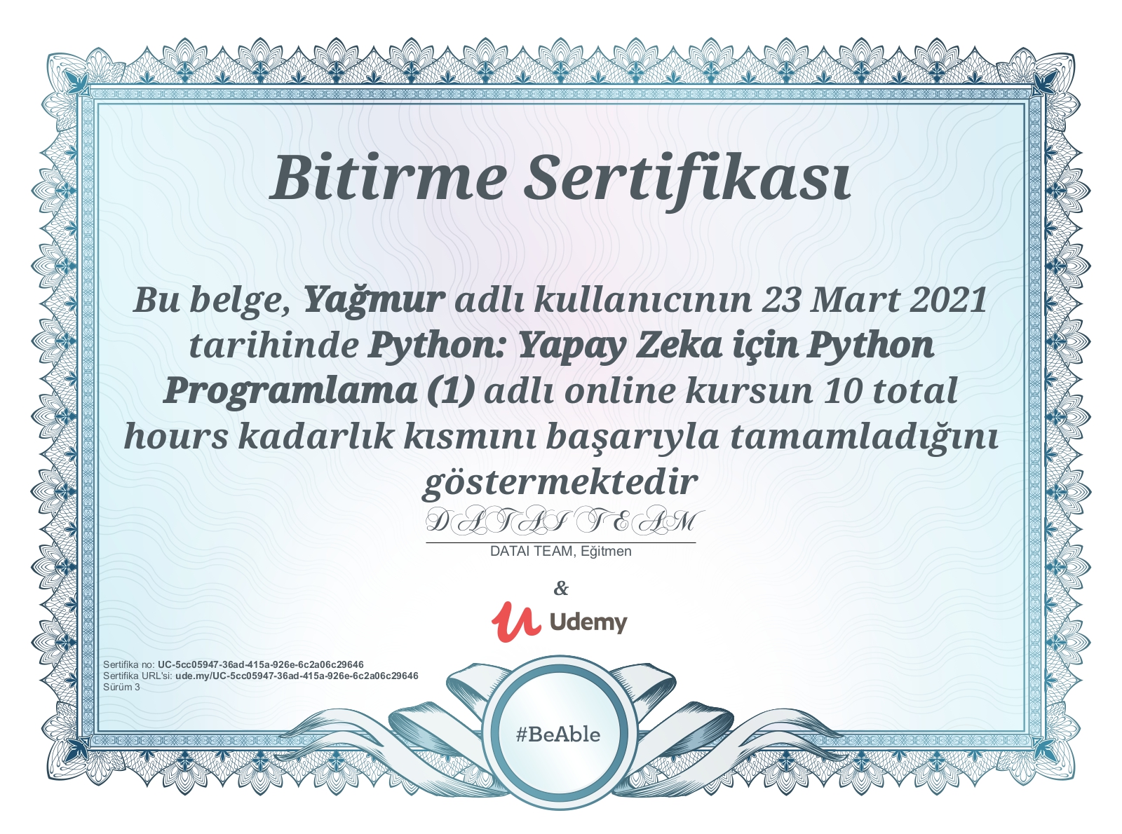 [TUR] Bugün, Udemy üzerinden "Python Programlama" ve "A'dan Z'ye Makine ...
