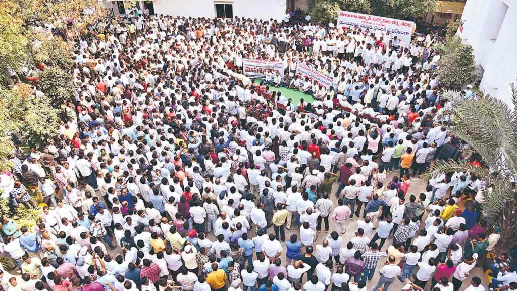 కదం తొక్కిన కరెంటోళ్లు.. డిస్కమ్ యాజమాన్యం మొండి వైఖరిపై జేఏసీల మహాధర్నా