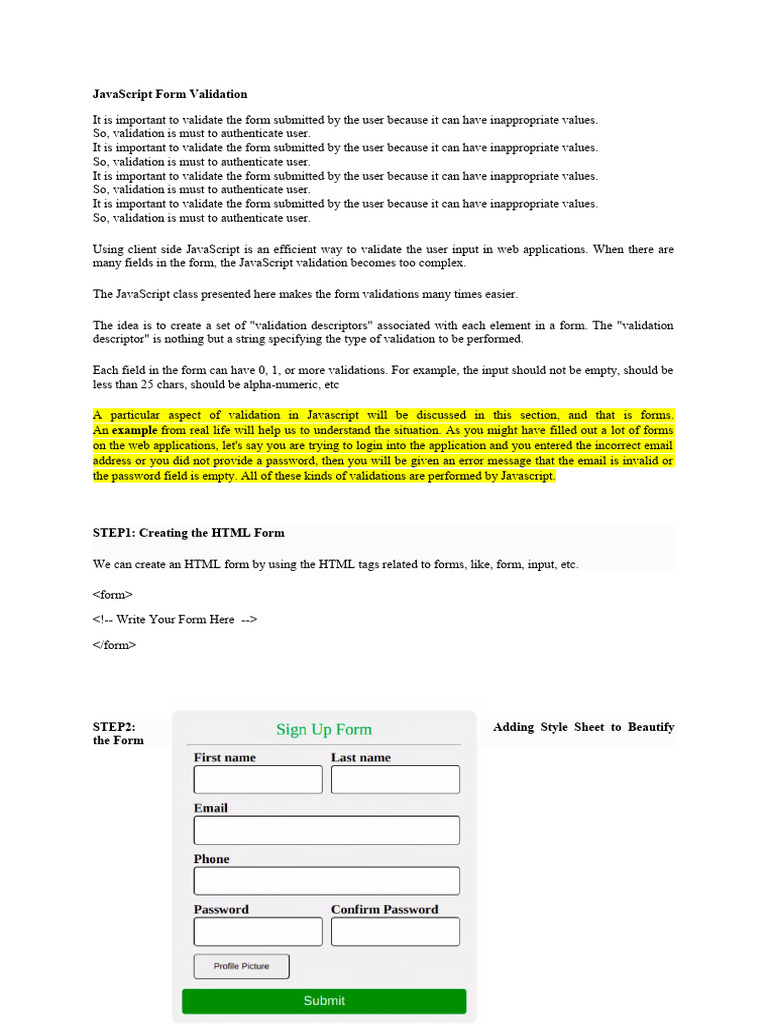 Based on this image's title: “JavaScript Form Validation | PDF | Java Script | Html”