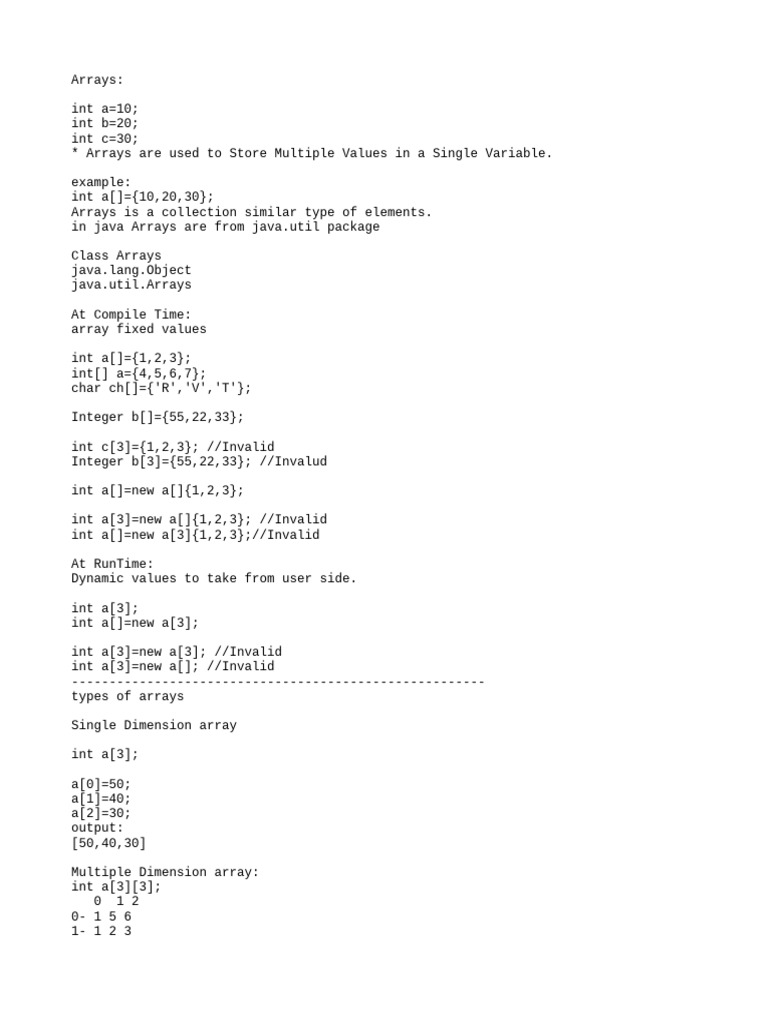 SOLUTION: Java notes on arrays and its types arrays of strins etc with ...