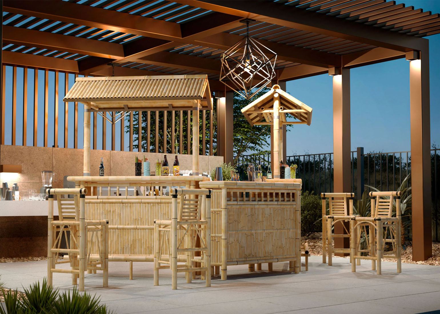 RAM Game Room Three Bar Bamboo Tiki Set With Four Stools By RAM Game ...