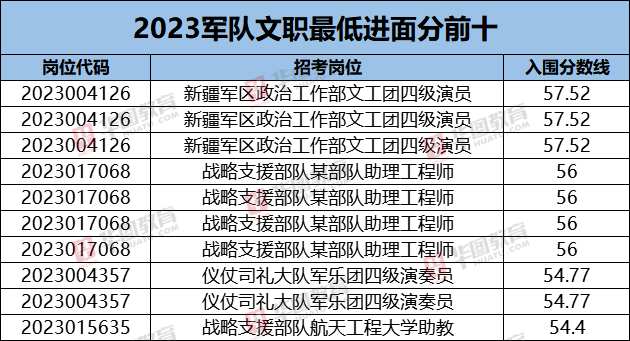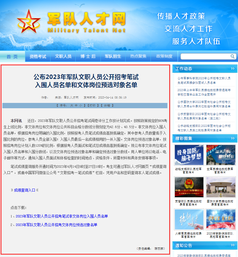 快查!2023军队文职笔试成绩及进面名单_岗位_文体_分数线