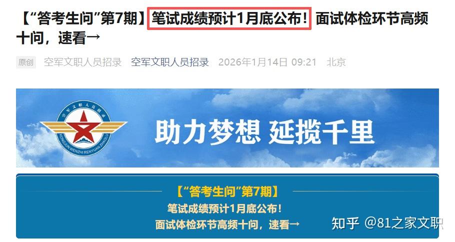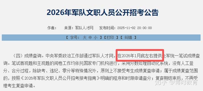 2026年军队文职笔试成绩公布时间!重磅! - 知乎
