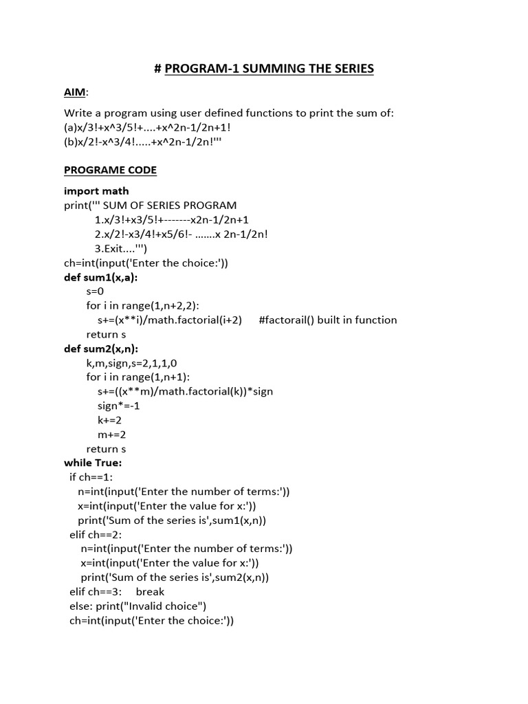 Sum of Series Program in Python | PDF
