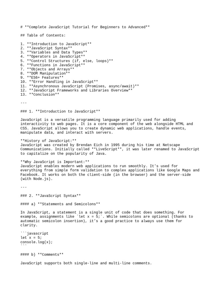 Based on this image's title: “Complete JavaScript Tutorial | PDF | Java Script | Software Development”