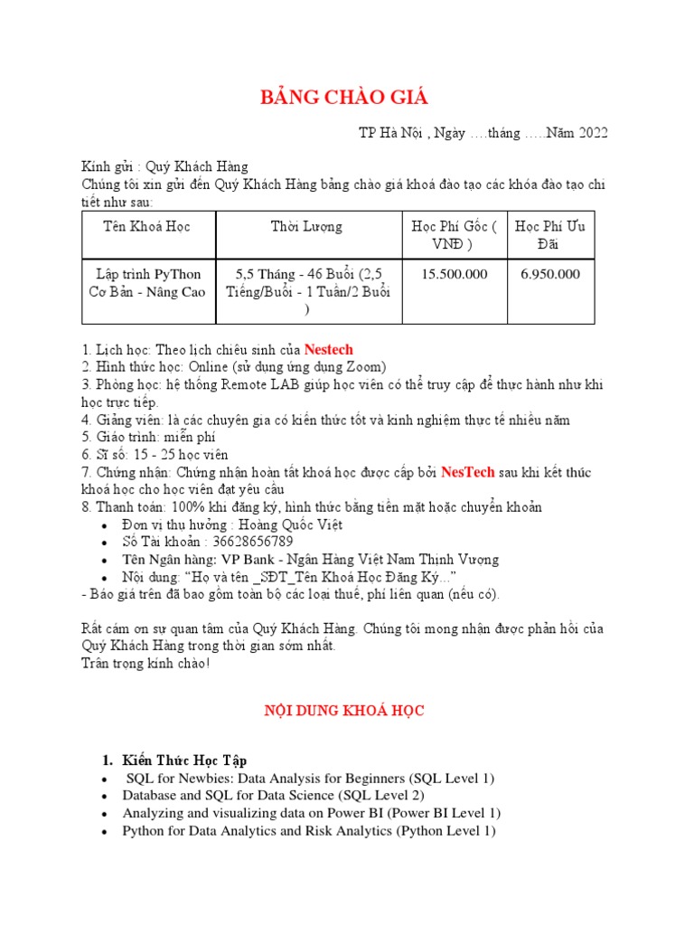 Khoá Học Python Cơ Bản Đến Chuyên Sâu - Nestech Mới | PDF