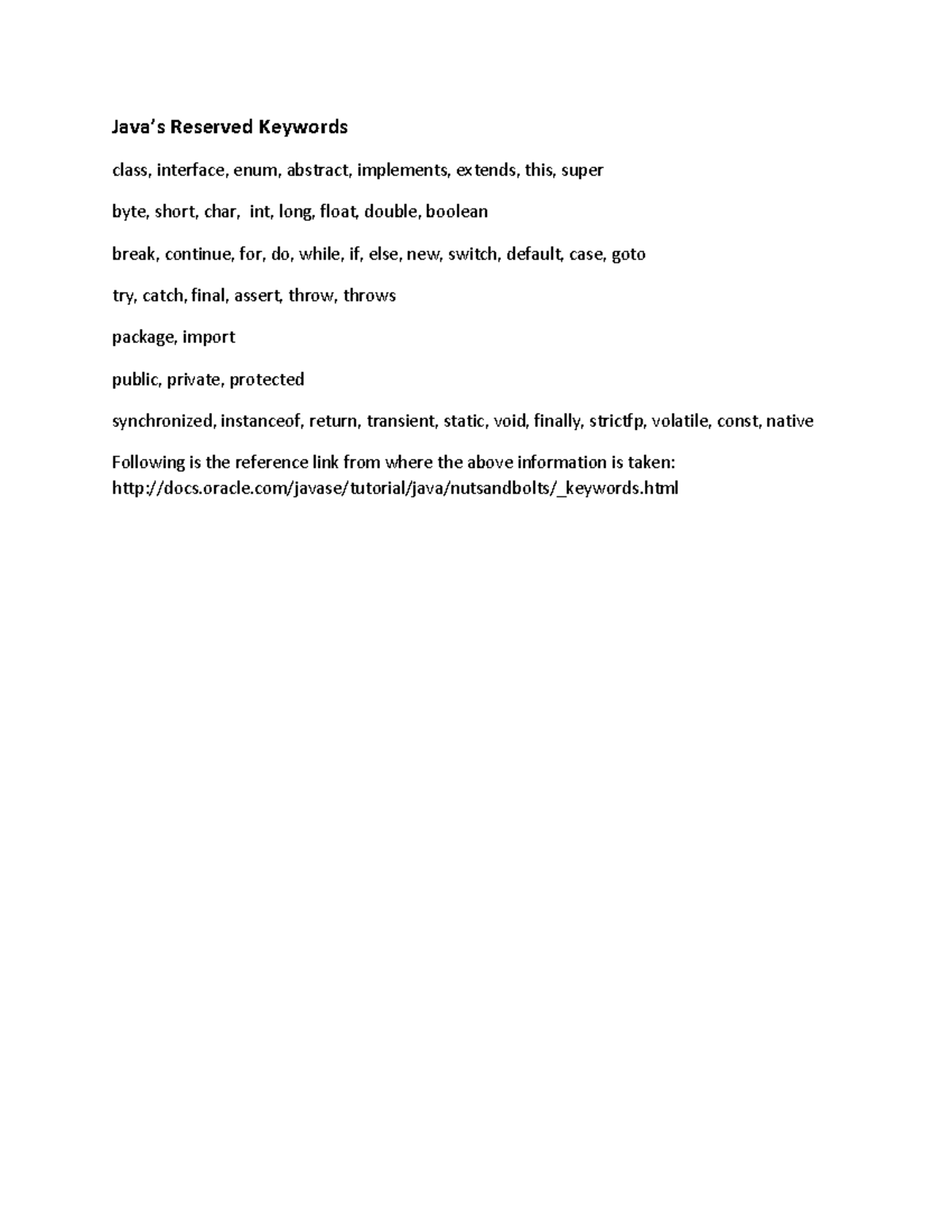 3 2 supplementary notes - Java’s Reserved Keywords class, interface ...