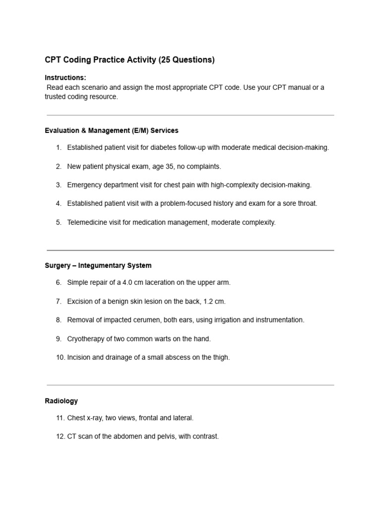 CPT Coding Practice: Assigning Codes for Various Medical Services ...