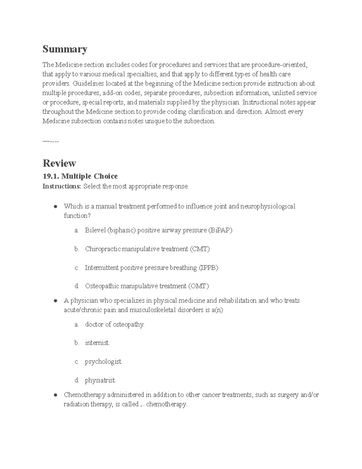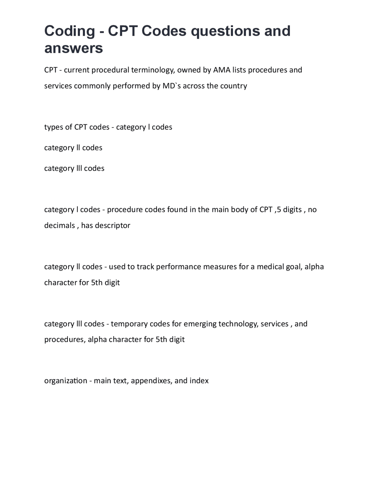 CPT 1 Series - Medical Coding Practice Questions and Answers - Studocu