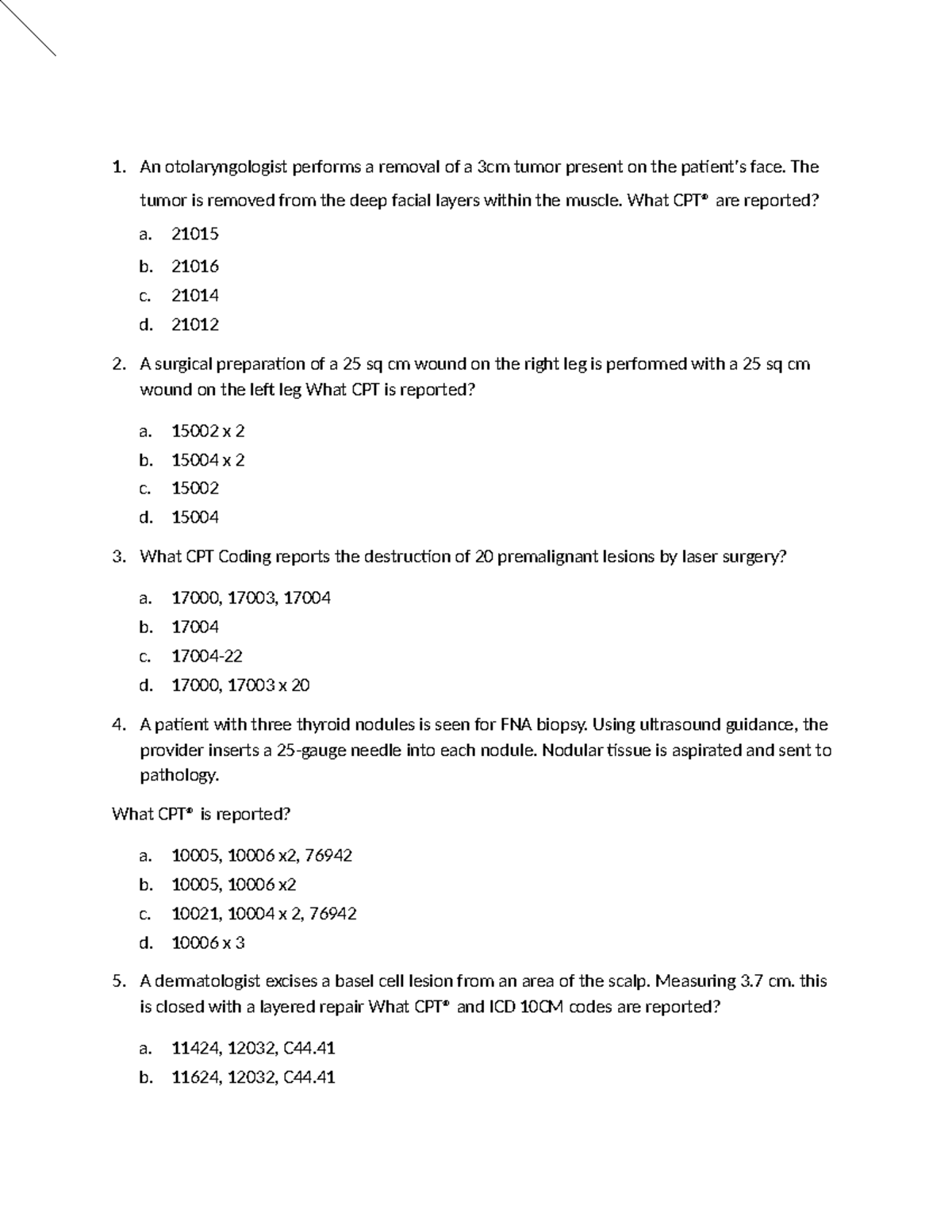 CPT Coding Practice Questions for Medical Professionals - Studocu