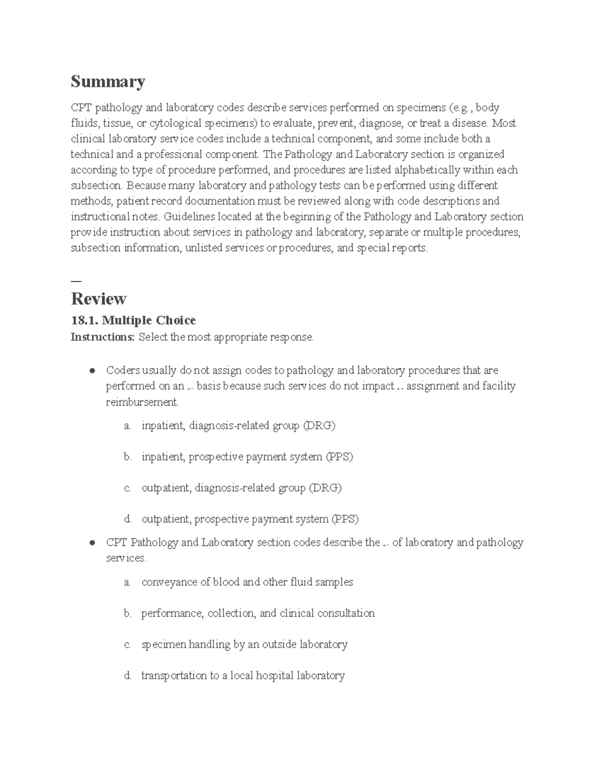 CPT Coding Practice: Pathology & Lab Section Review - Studocu