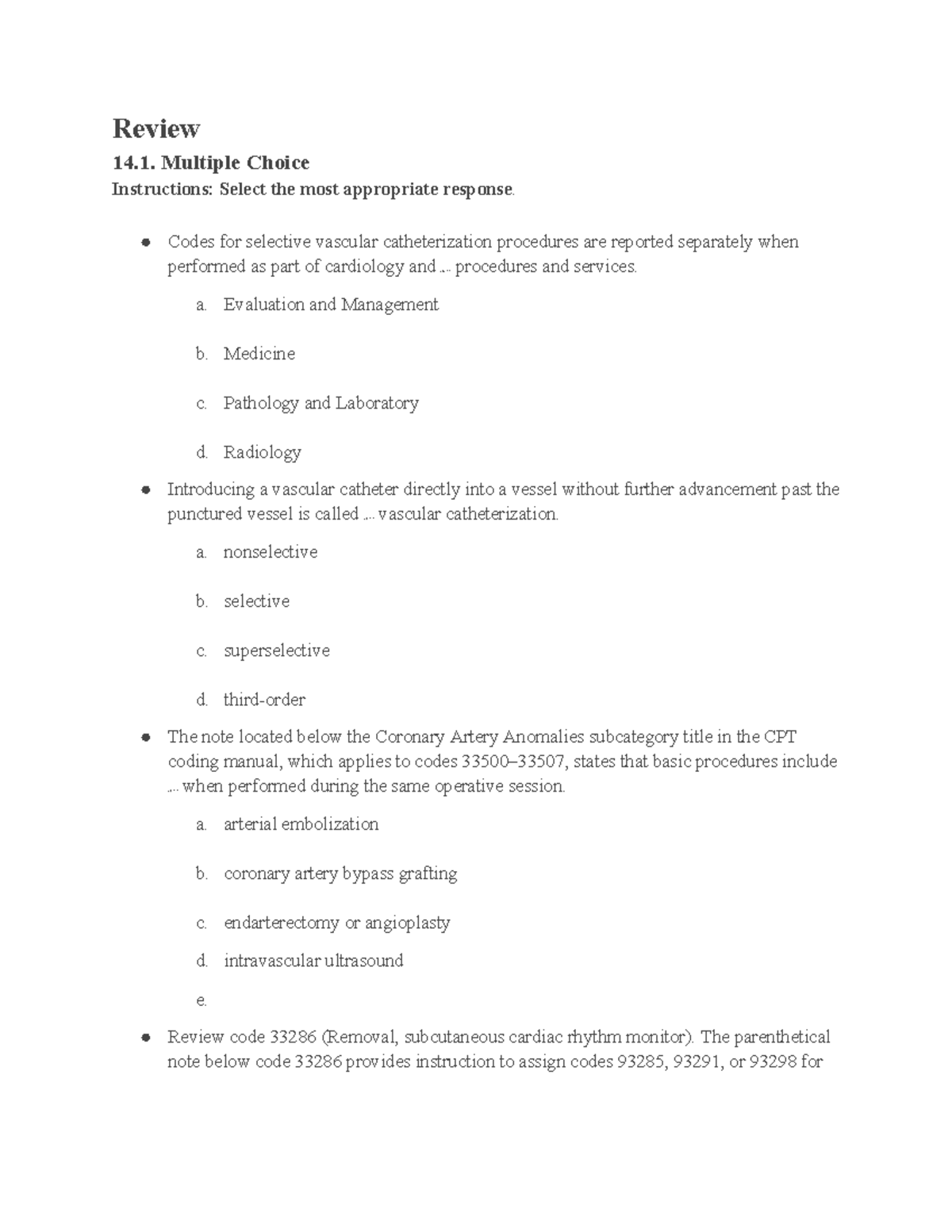 Final Exam Review: CPT Coding Practice for CV & Lymphatic Systems - Studocu