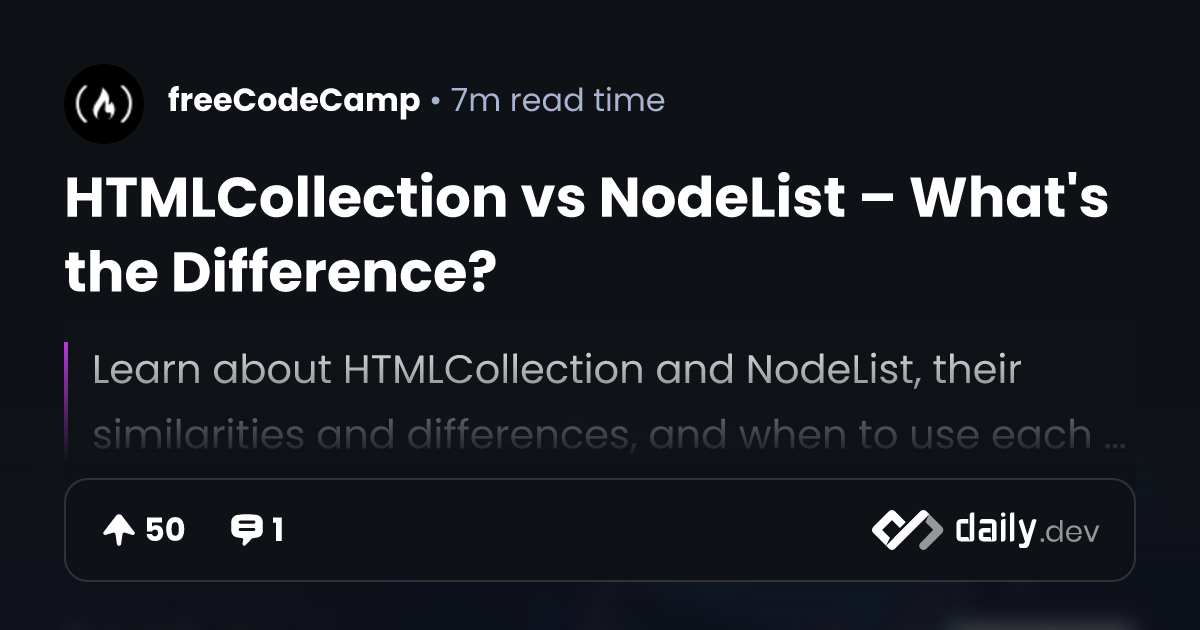 HTMLCollection vs NodeList – What's the Difference? | daily.dev