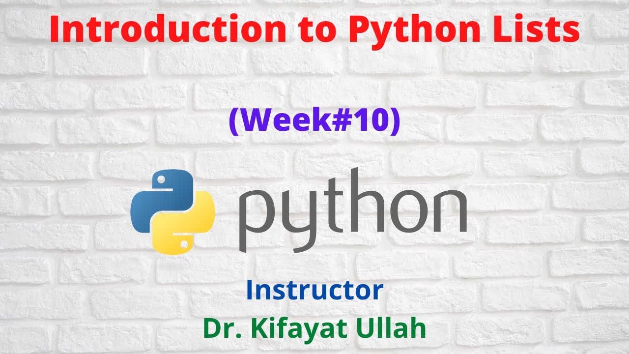 Introduction to Lists || Arrays || Programming with Python (Week#10 ...