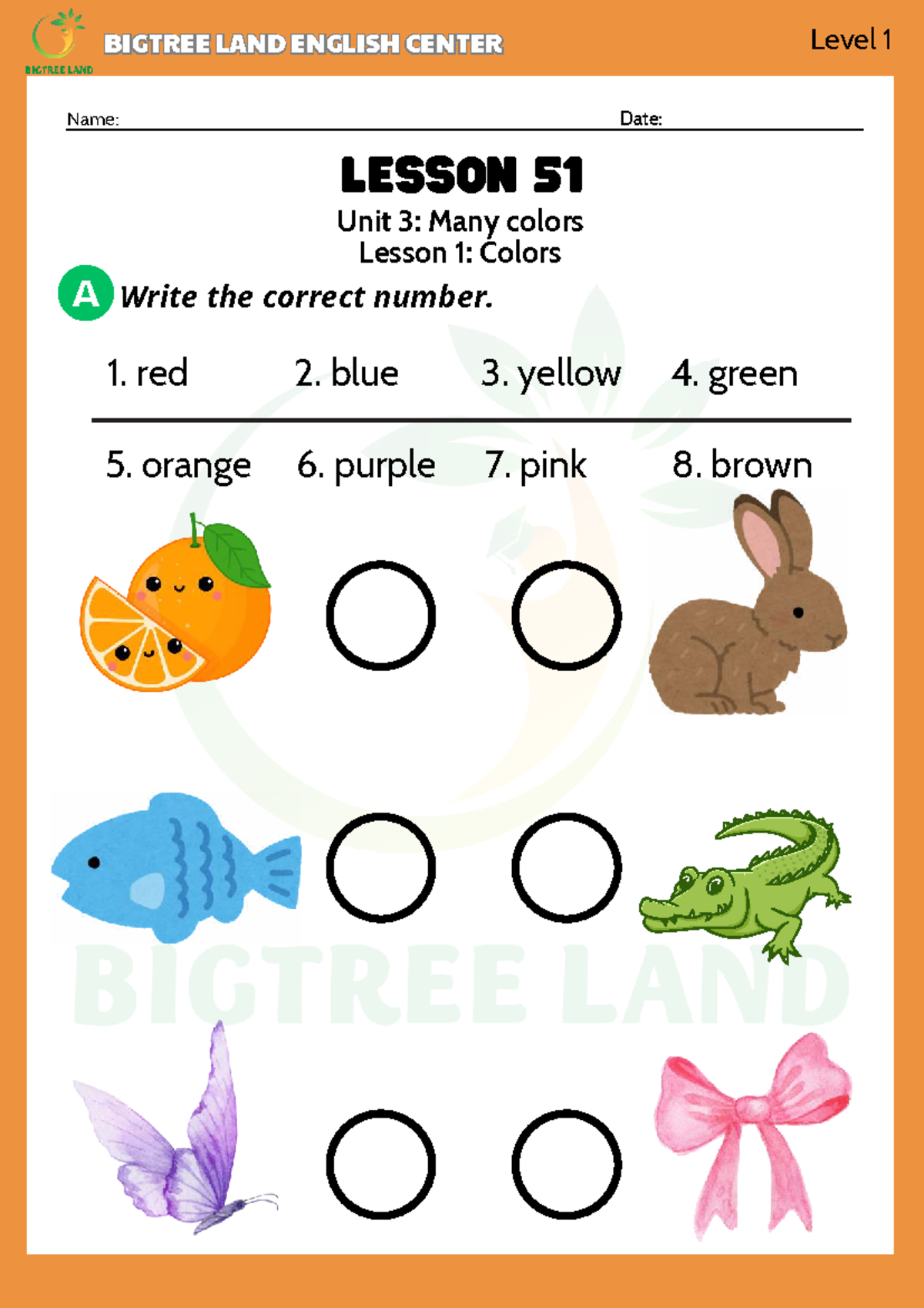 Worksheet - Lesson 51 - Level 1 - Kinh tế đô thị - Unit 3: Many colors ...