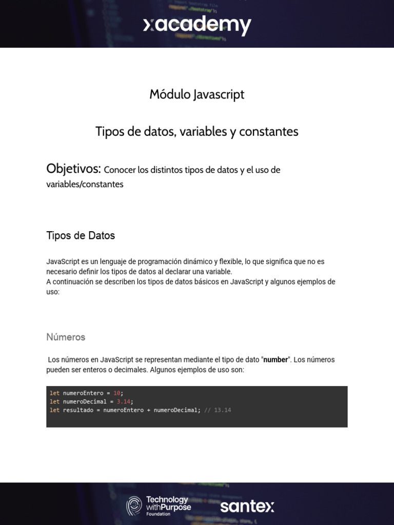 Tipos de Datos y Variables en JavaScript | PDF | Tipo de datos ...