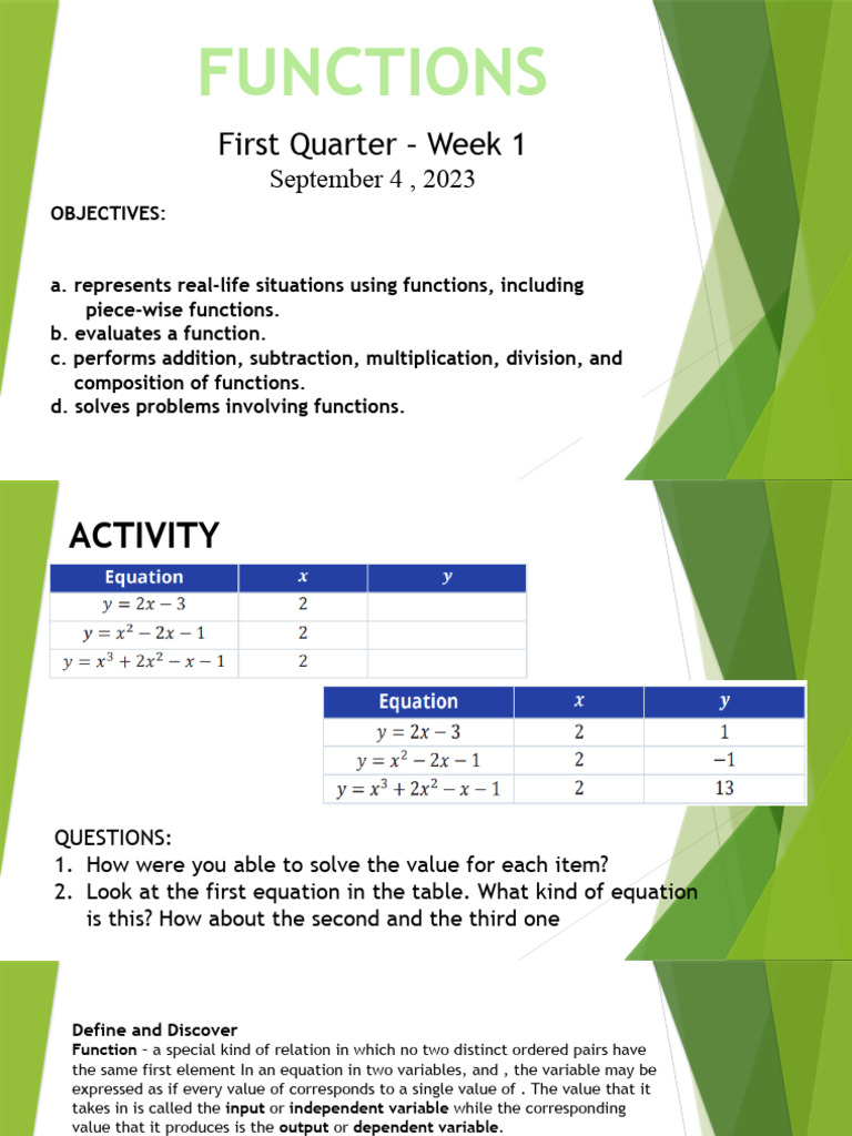 w1q1 Students PDF | PDF | Function (Mathematics) | Mathematical Relations