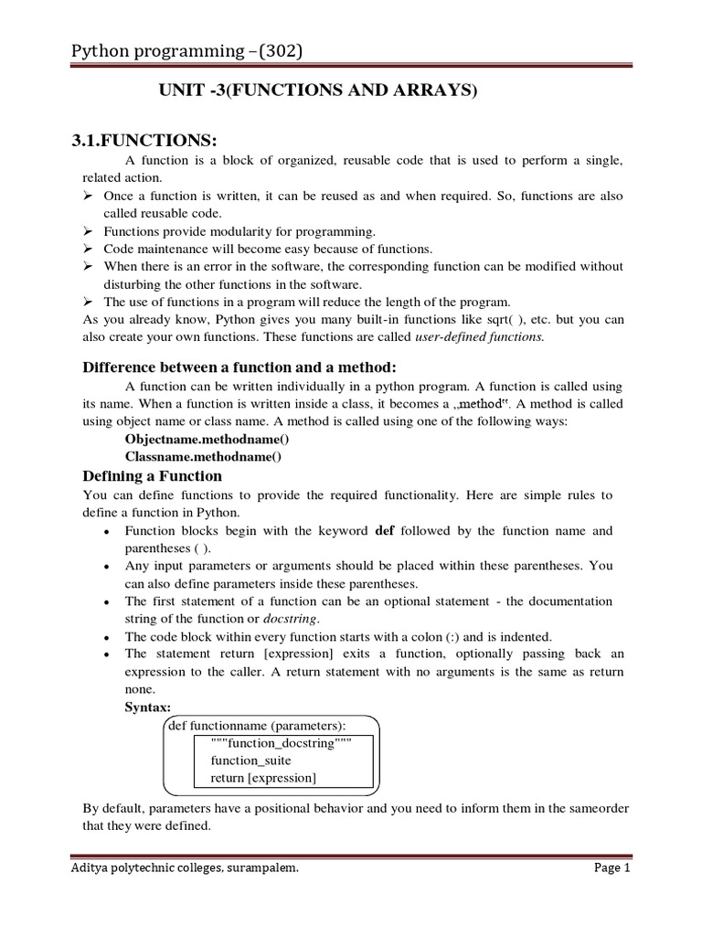 UNIT III - Python | PDF | Parameter (Computer Programming) | Anonymous ...