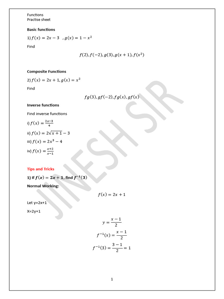 Function Part 1 - Intro To Simple and Inverse Function | PDF | Function ...