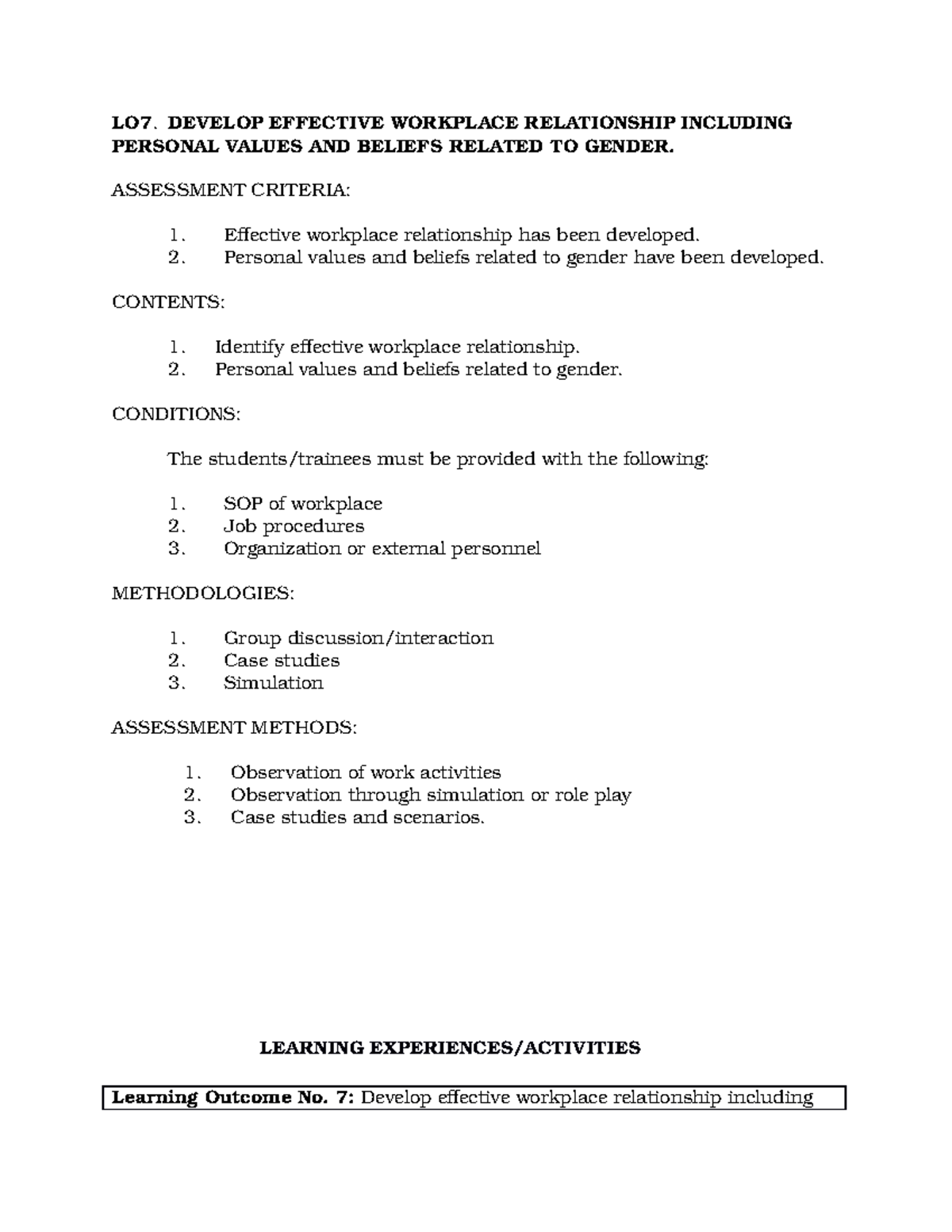 Work in team - Lecture notes Learning outcome 1, 2 and 3 - LO7. DEVELOP ...