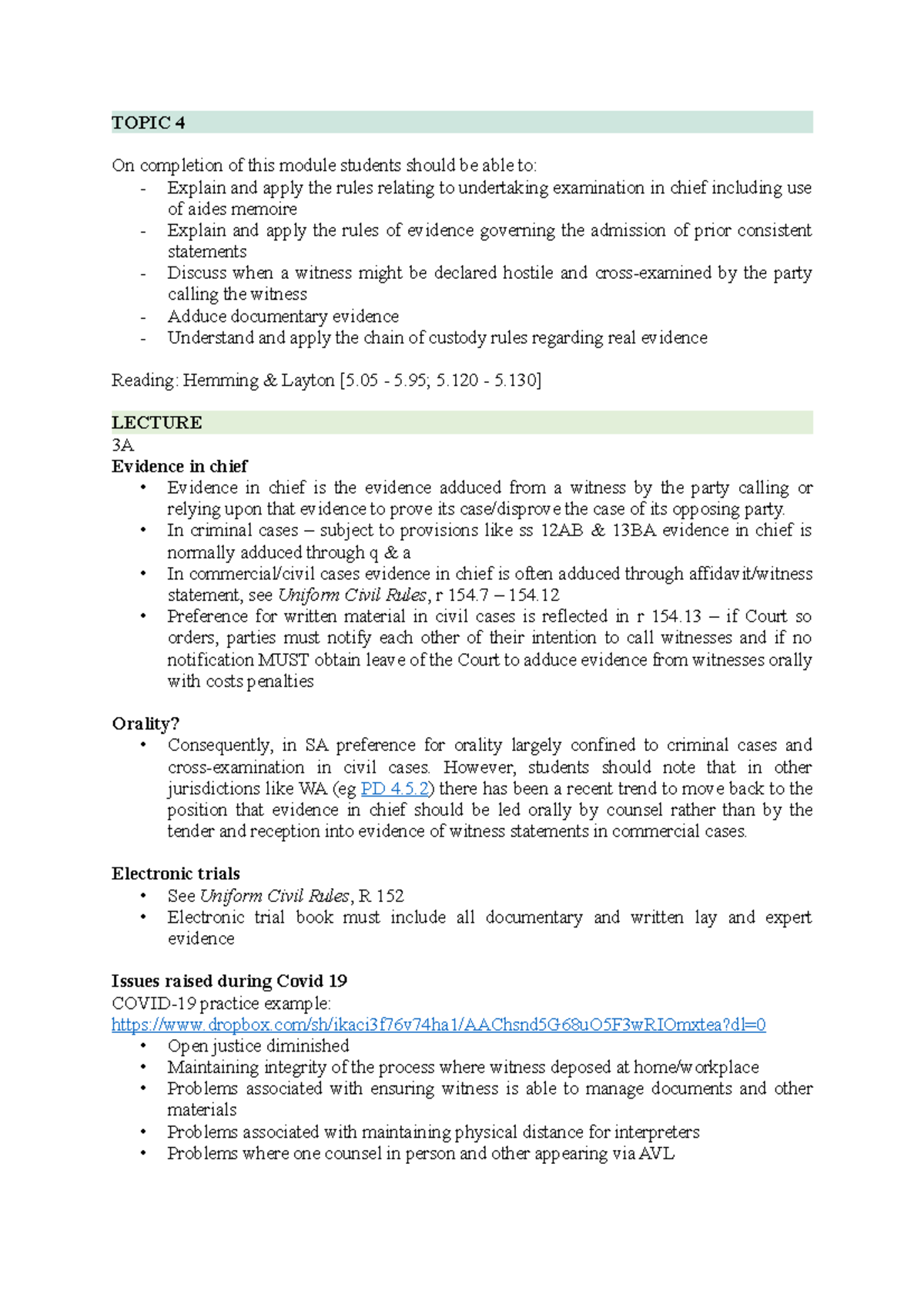 Week 4 lecture - notes exam prep 4 - TOPIC 4 On completion of this ...