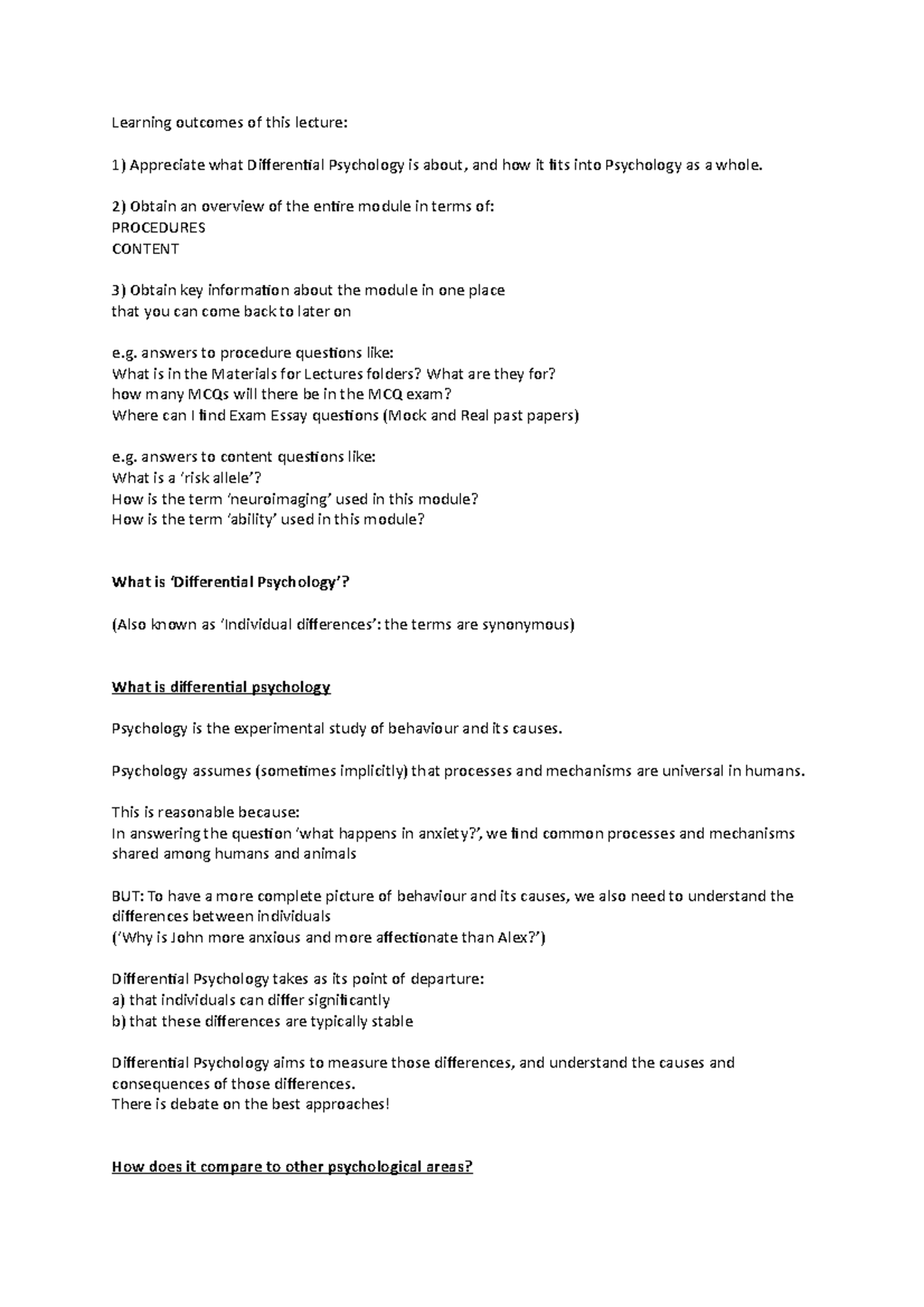 SOC103 - Lecture notes 1 - LEARNING OUTCOMES: On successful completion ...