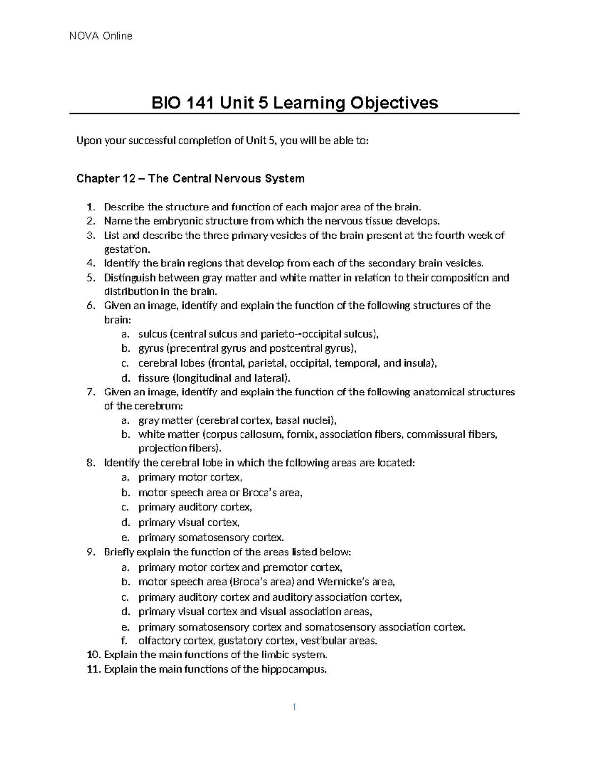 BIO141Unit5LOs - lecture notes - BIO 141 Unit 5 Learning Objectives ...