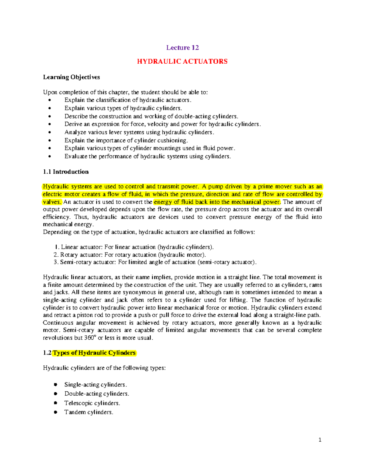 Lecture-12 hydraulic-actuators - Lecture 12 HYDRAULIC ACTUATORS ...