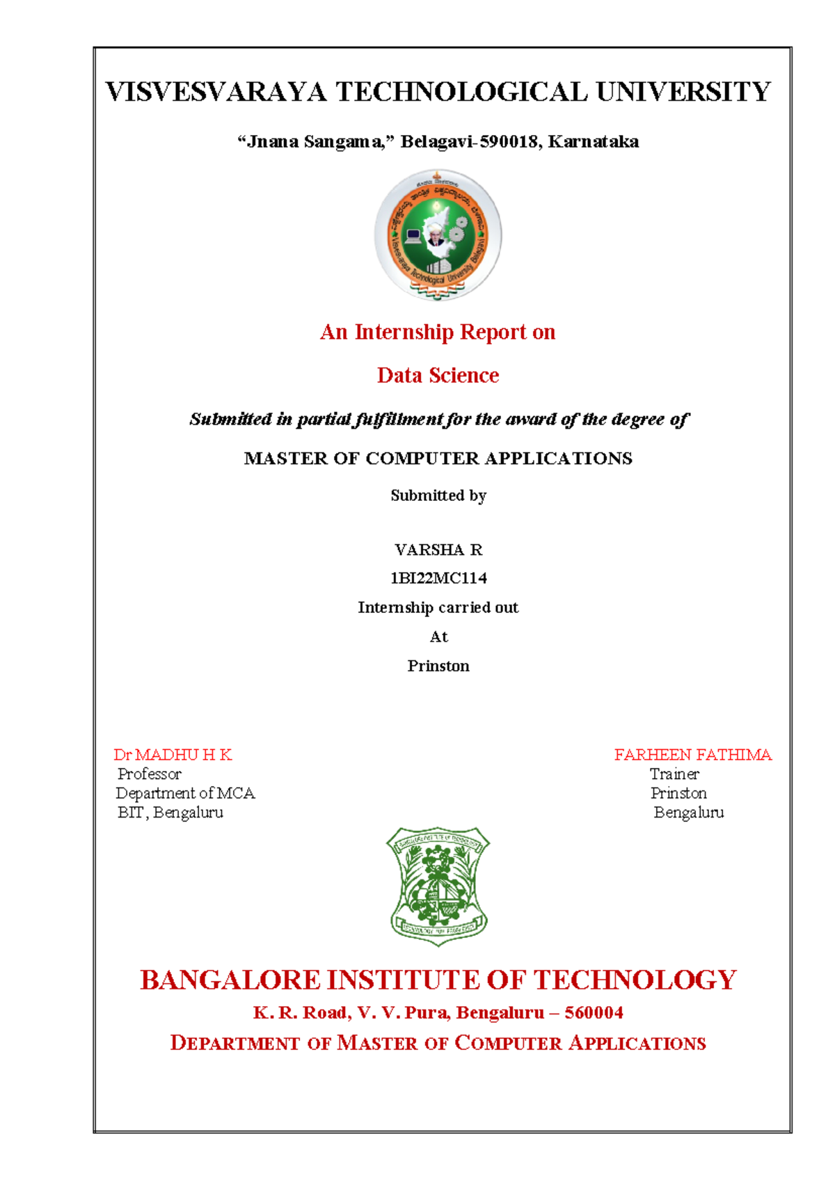 Data science Report (46) - VISVESVARAYA TECHNOLOGICAL UNIVERSITY “Jnana ...