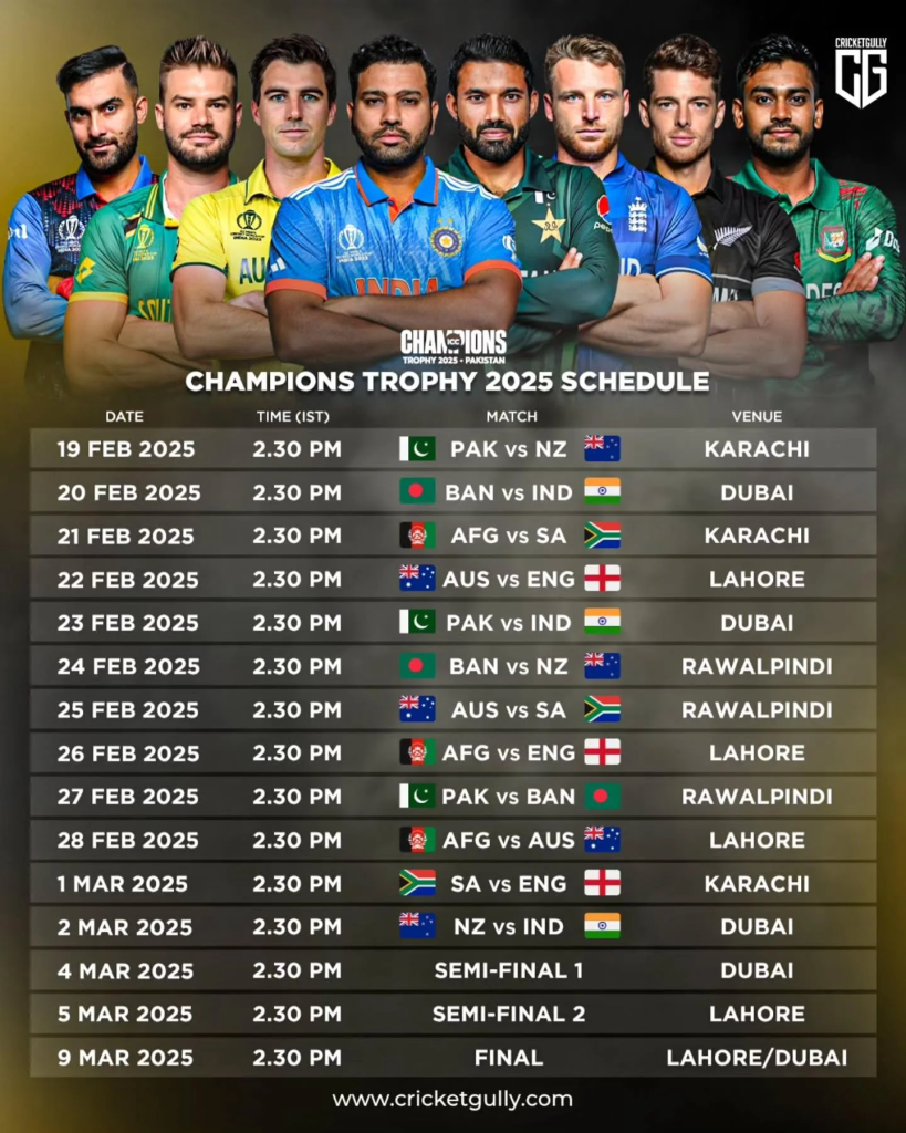 ICC Champions Trophy, 2025 Schedule Fixtures Matches, Venue, Timing and ...