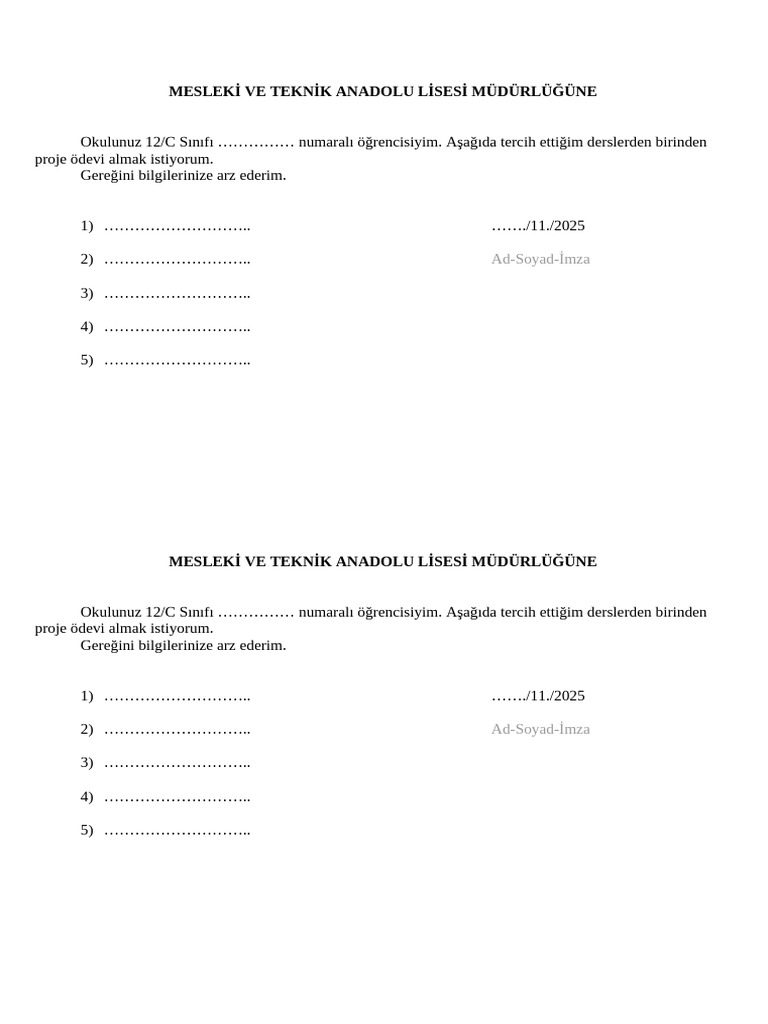 proje ödevi takip formu – mesleki ve teknik eğitim