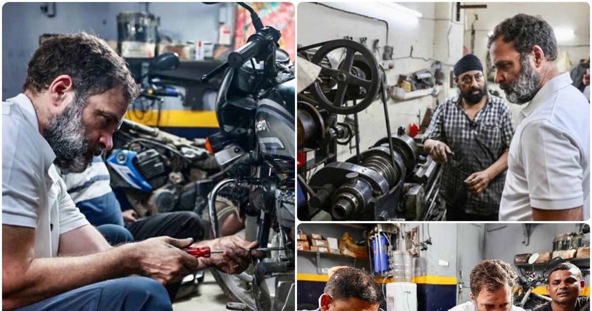 PHOTOS: राहुल गांधी का दिखा मैकेनिक अवतार, हाथ में रिंच लिए बाइक ठीक ...