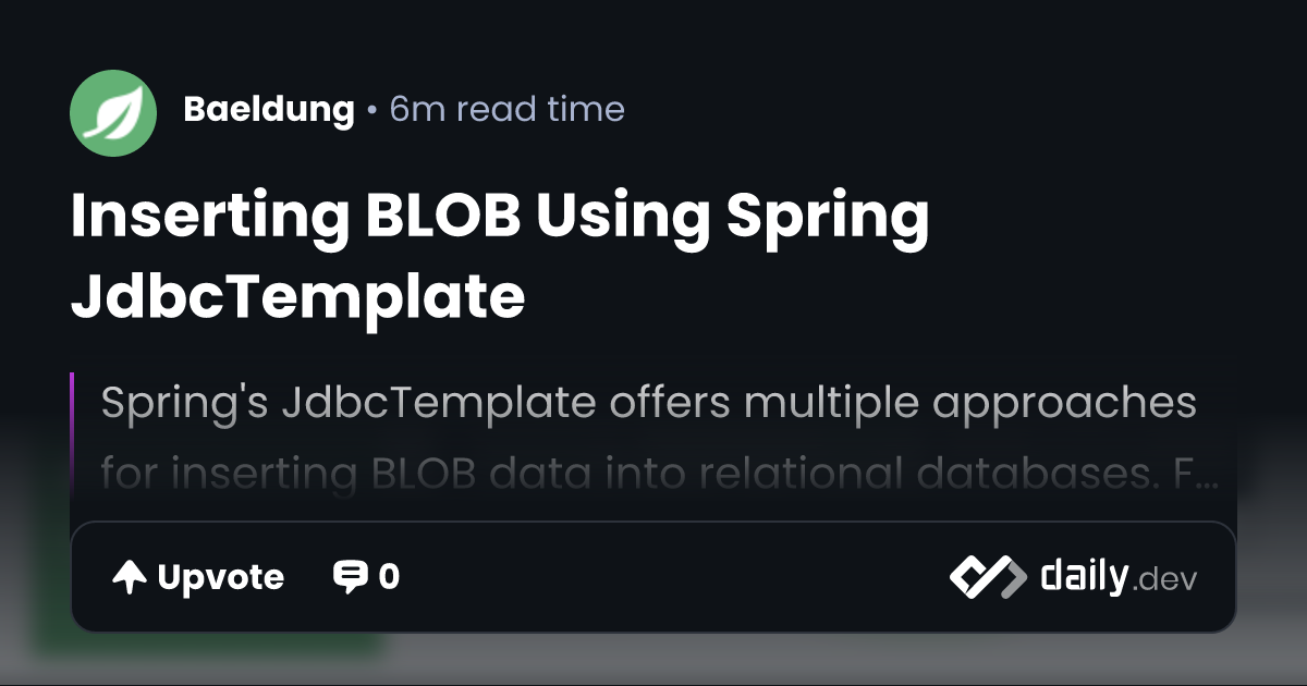 Inserting BLOB Using Spring JdbcTemplate | daily.dev