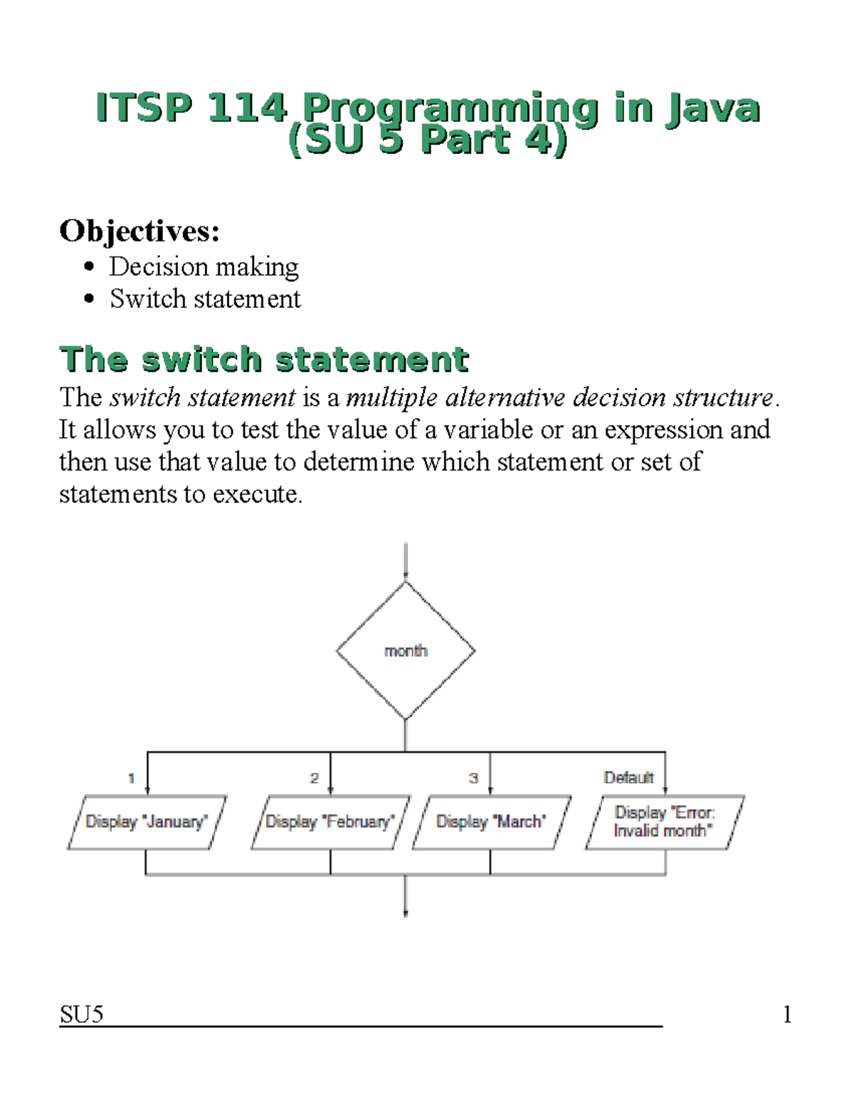 ITSP 114 SU5 Notes: Decision Making with Switch Statements Part 4 - Studocu