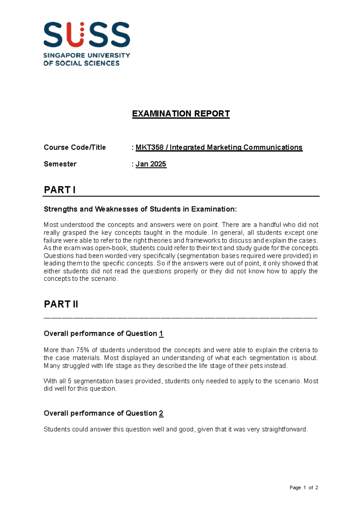 MKT358 Integrated Marketing Communications Exam Report - Jan 2025 - Studocu