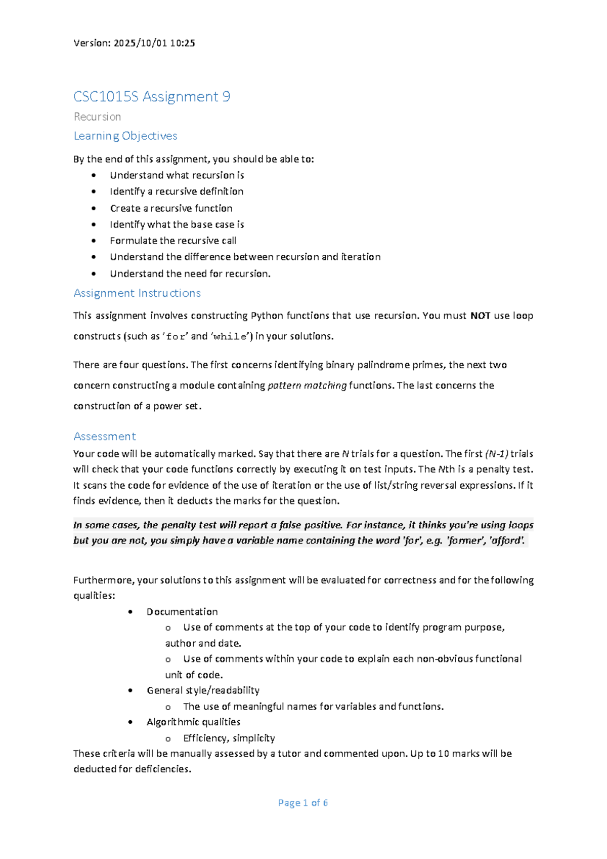 CSC1015S Assignment 9: Understanding Recursion in Python - Studocu