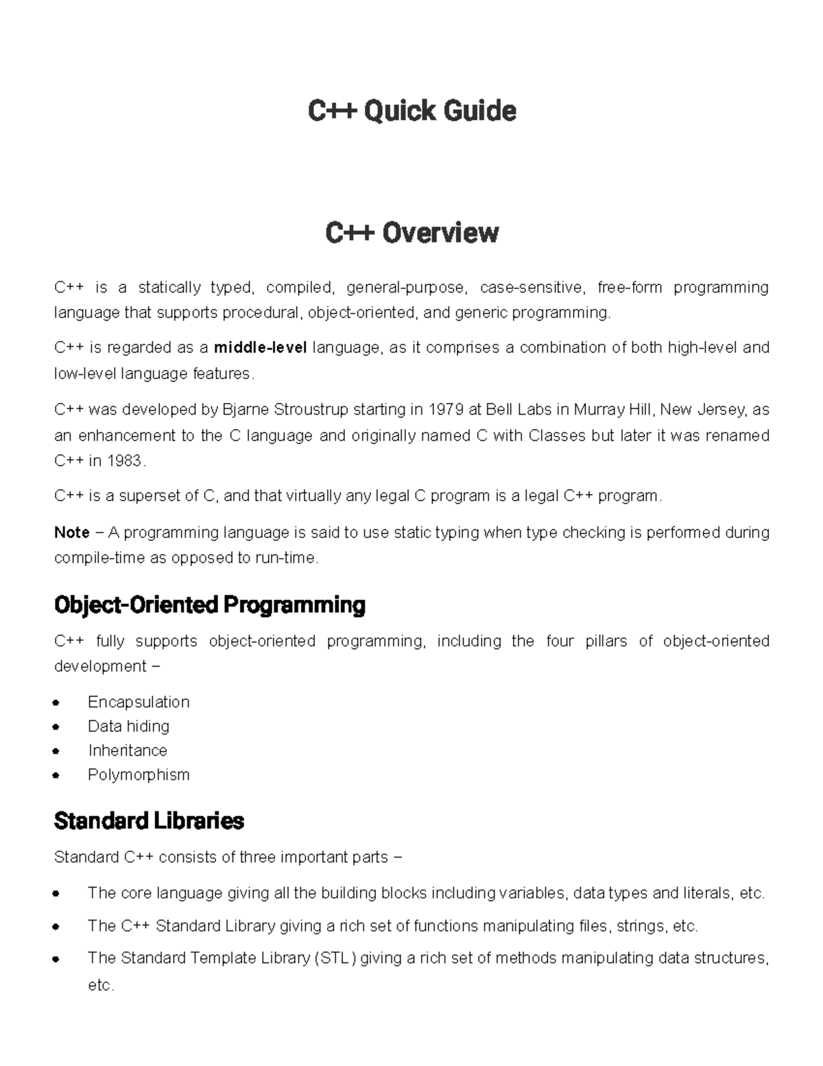 C++ Quick Guide - oops notes - C++ Quick Guide C++ Over view ...