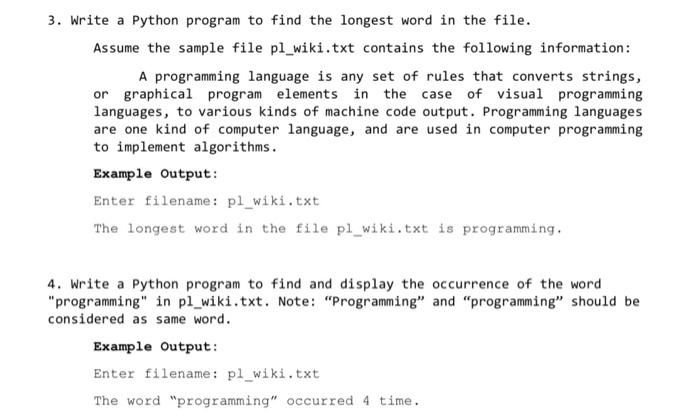 Solved 3. Write a Python program to find the longest word in | Chegg.com