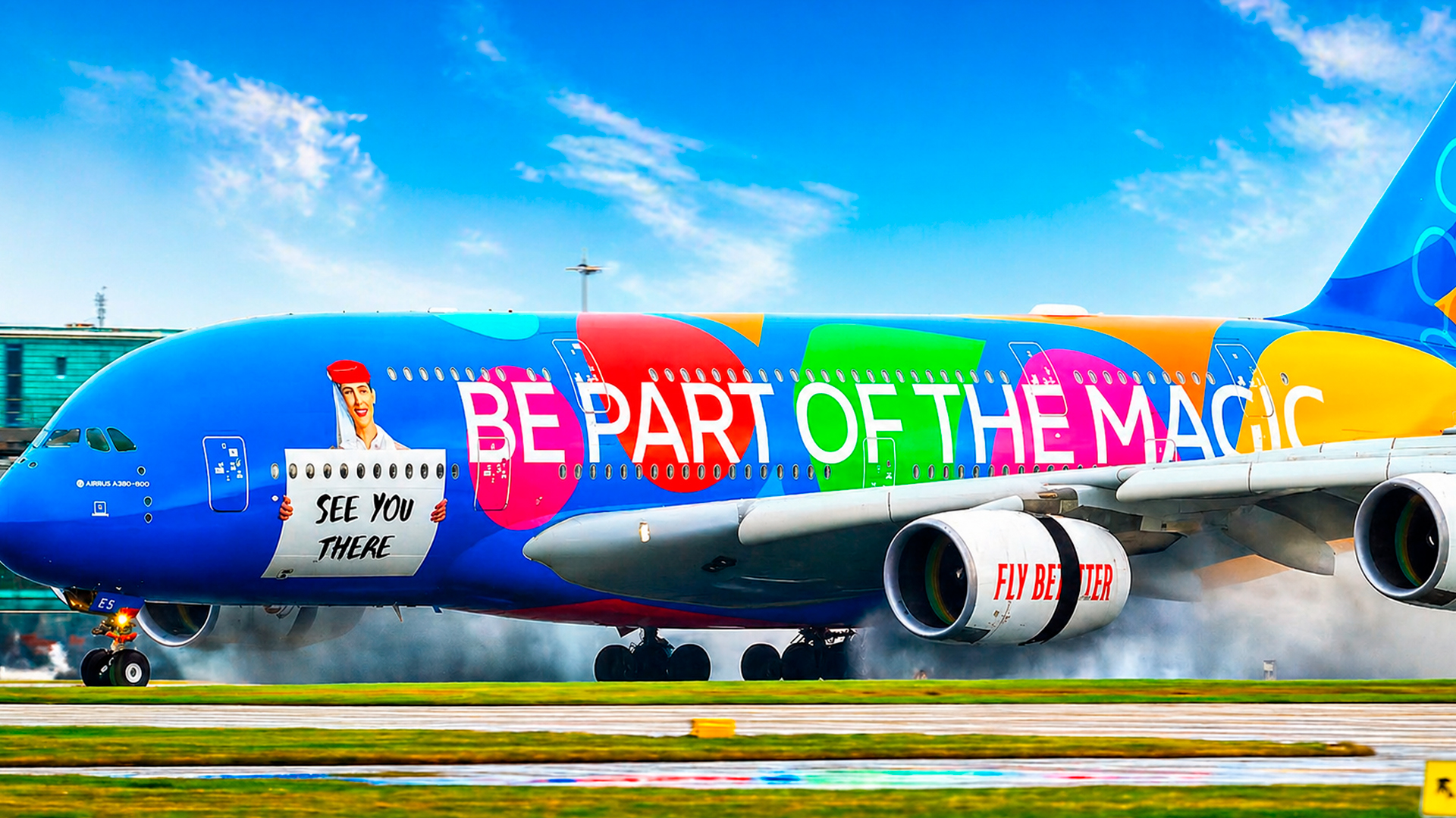 A380 slams reverse thrust creating massive spray