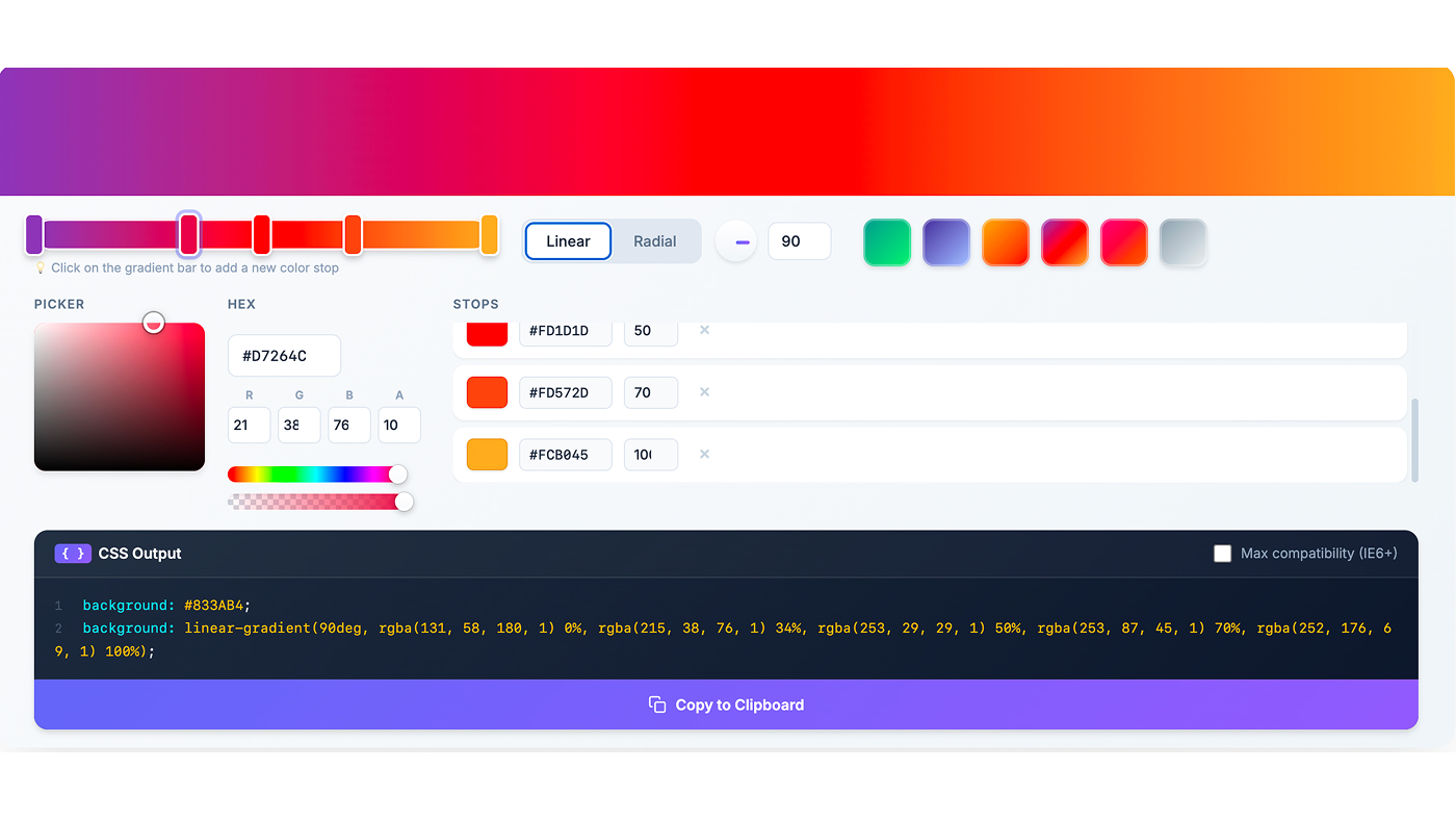 CSS Gradient Generator – Create Stunning Backgrounds - FreeToolsMax.com