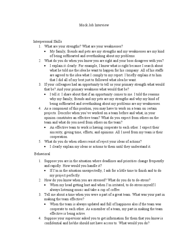 MOCK JOB INTERVIEW (Sample Questions & Answers) | PDF | Leadership ...
