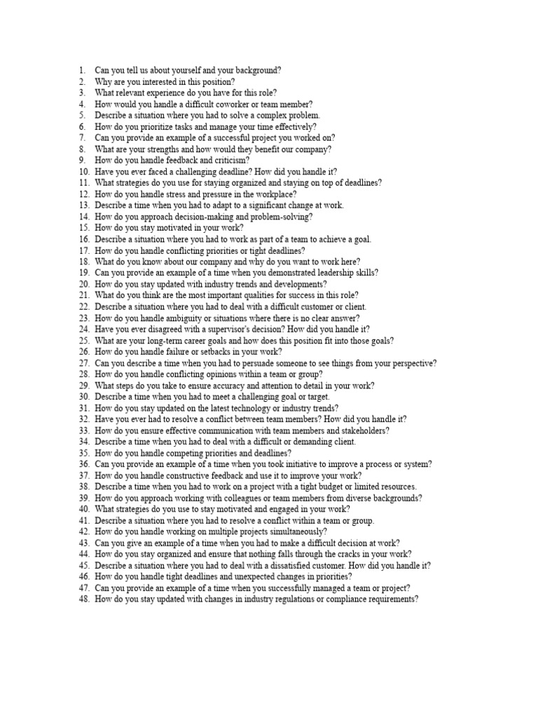 Sample Mock Job Interview Questions | PDF