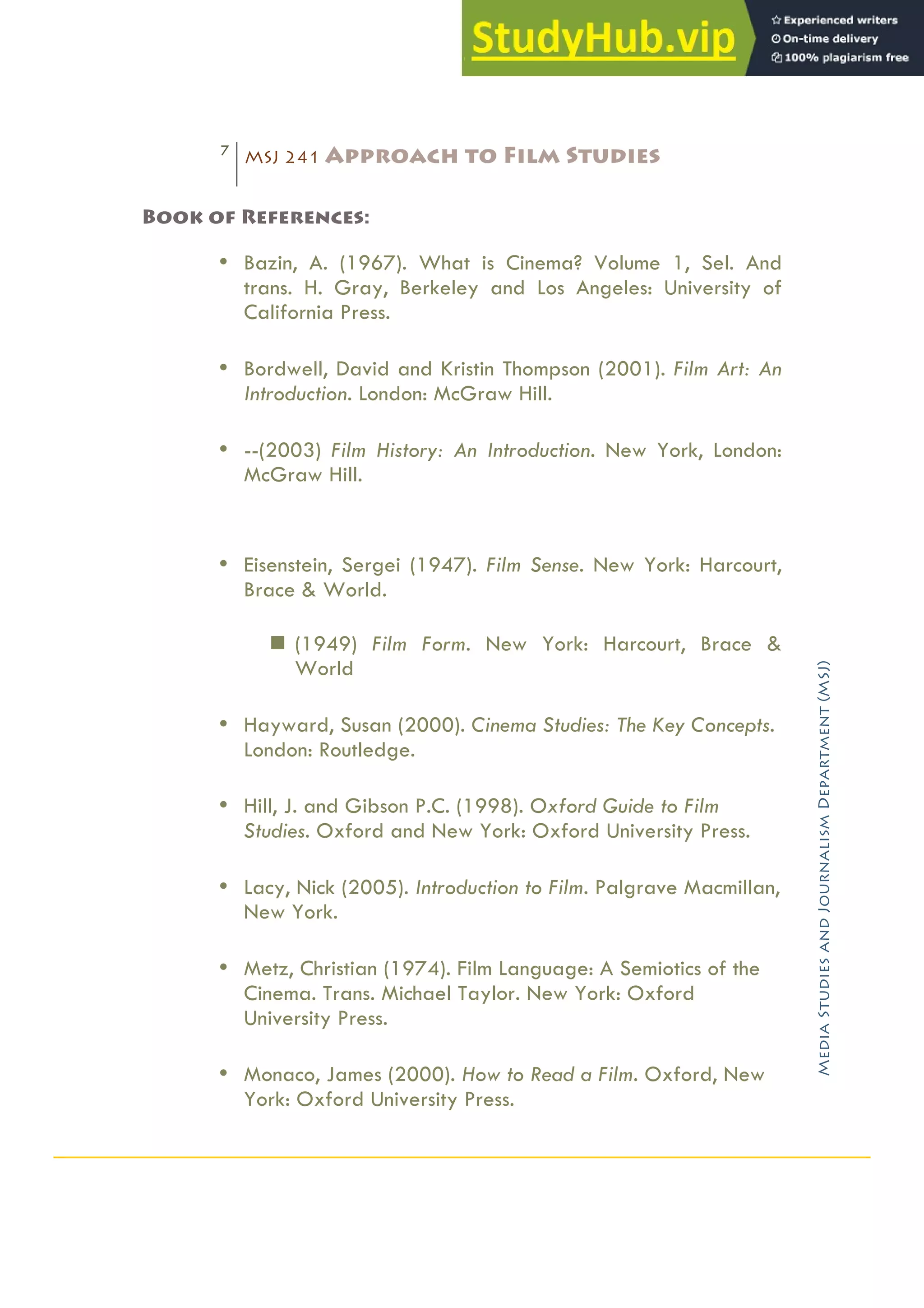 Approaches To Film Study Course Curriculum | PDF