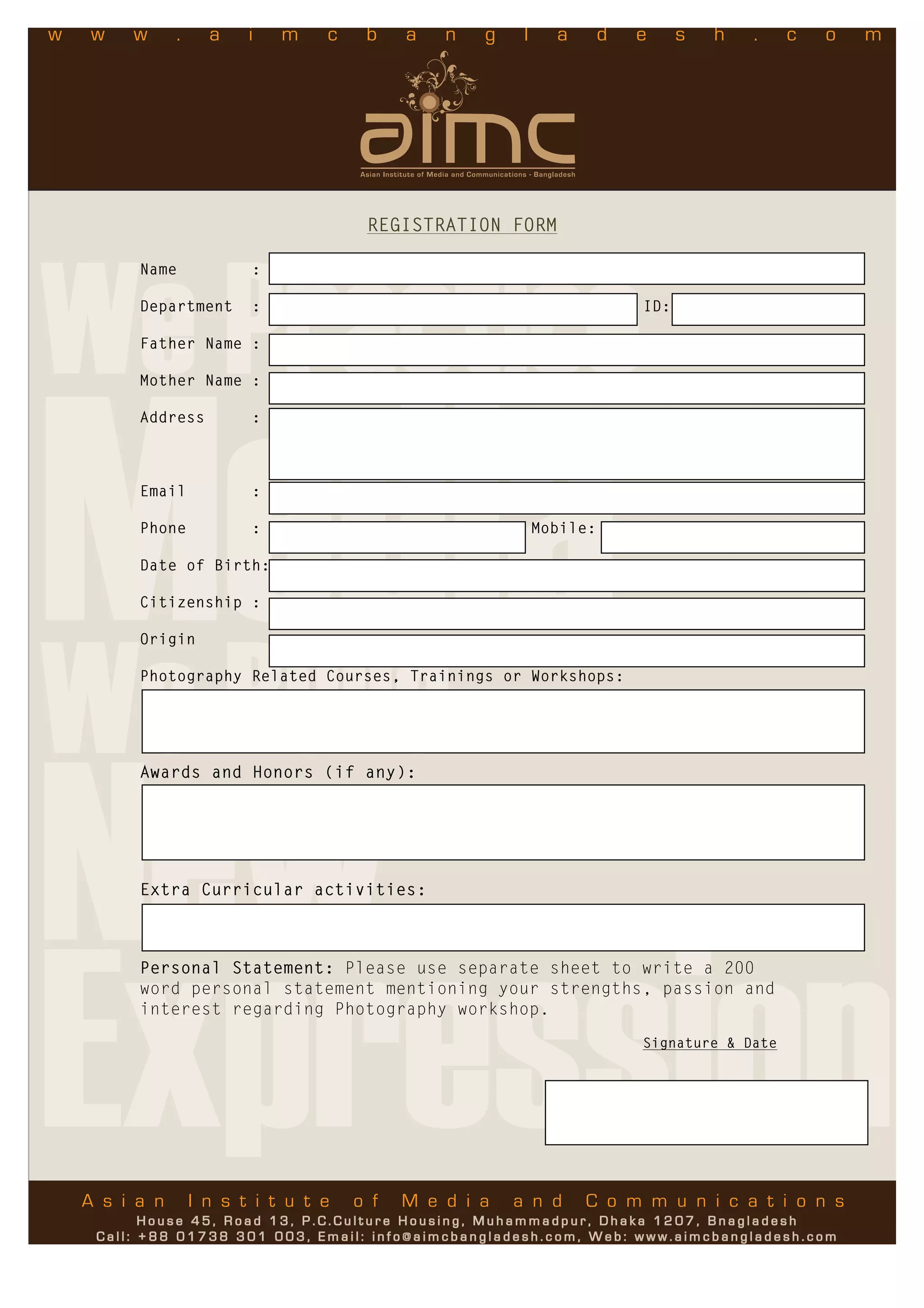 Registration form creative photography | PDF