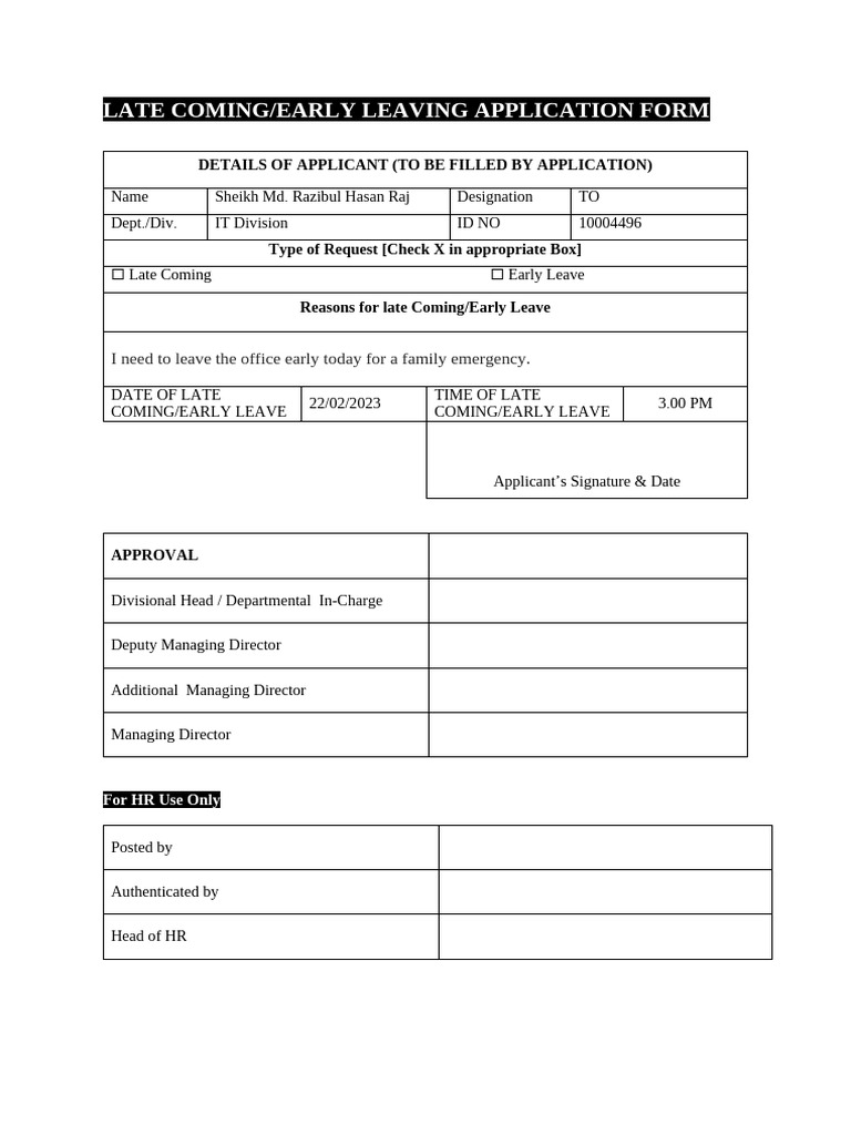 Late Coming or Early Leaving | PDF