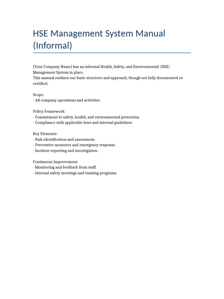 Informal HSE Management System Overview | PDF